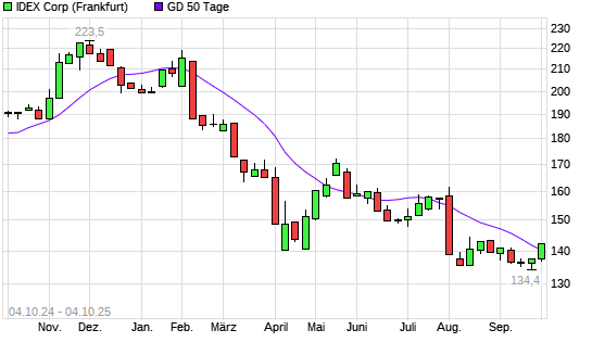 Mit dem Anstieg auf 142,15 EUR hat die IDEX Corporation-Aktie am 03.10.2025 die 50-Tage-Linie nach oben gekreuzt.Die IDEX Corporation-Aktie befindet sich seit dem 05.02.2025 im langfristigen ...weiterlesen