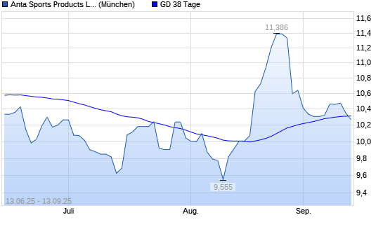 Mit dem Rücksetzer auf 10,15 EUR hat die ANTA Sports Products-Aktie am 12.09.2025 die 38-Tage-Linie nach unten gekreuzt.