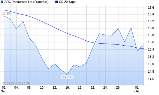 Mit dem Anstieg auf 15,65 EUR hat die ARC Resources-Aktie am 01.10.2025 die 20-Tage-Linie nach oben gekreuzt.