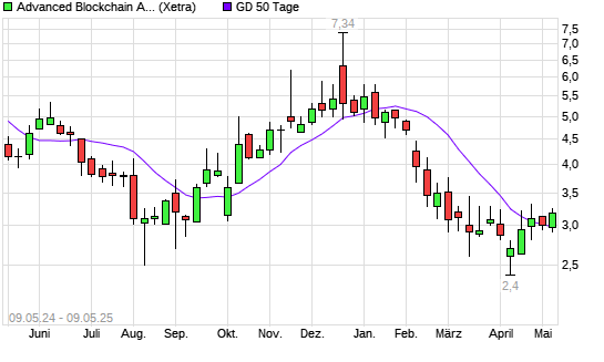 Mit dem Anstieg auf 3,05 EUR hat die Advanced Blockchain-Aktie am 08.05.2025 die 50-Tage-Linie nach oben gekreuzt.
