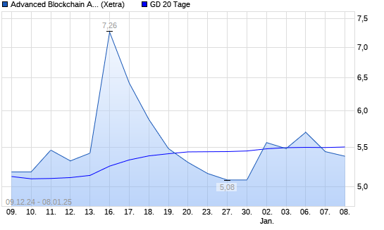 Mit dem Rücksetzer auf 5,36 EUR hat die Advanced Blockchain-Aktie am 07.01.2025 die 20-Tage-Linie nach unten gekreuzt.