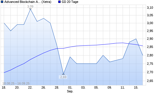 Mit dem Rücksetzer auf 2,80 EUR hat die Advanced Blockchain-Aktie am 15.09.2025 die 20-Tage-Linie nach unten gekreuzt.