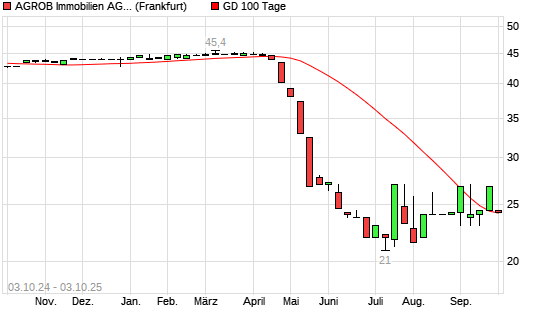 Mit dem Anstieg auf 24,20 EUR hat die Agrob VZ-Aktie am 02.10.2025 die 100-Tage-Linie nach oben gekreuzt.Die Agrob VZ-Aktie befindet sich seit dem 22.04.2025 im langfristigen Abwärtstrend und ...weiterlesen
