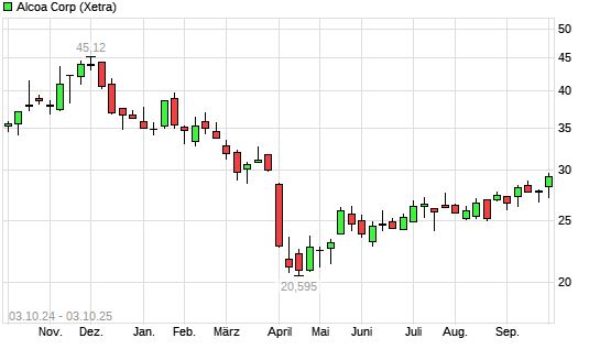 Mit dem Anstieg auf 28,66 EUR hat die Alcoa Upstream-Aktie (ISIN US0138721065) am 02.10.2025 ein neues 6-Monats-Hoch erreicht und damit den Kurs vom 30.09.2025 eingestellt.