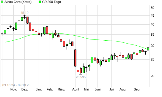 Mit dem Anstieg auf 28,66 EUR hat die Alcoa Upstream-Aktie am 02.10.2025 die 200-Tage-Linie nach oben gekreuzt.