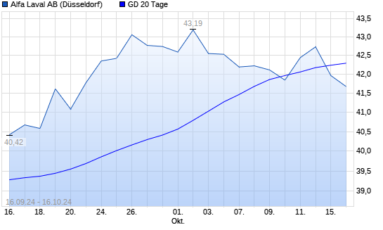 Mit dem Rücksetzer auf 41,78 EUR hat die Alfa Laval-Aktie am 15.10.2024 die 20-Tage-Linie nach unten gekreuzt.