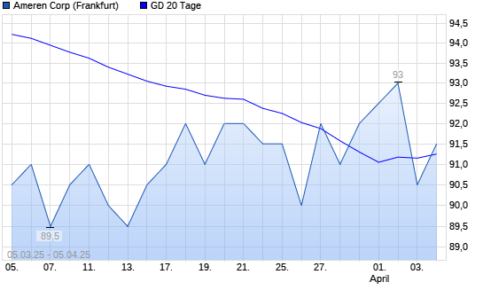Mit dem Anstieg auf 91,50 EUR hat die Ameren-Aktie am 04.04.2025 die 20-Tage-Linie nach oben gekreuzt.