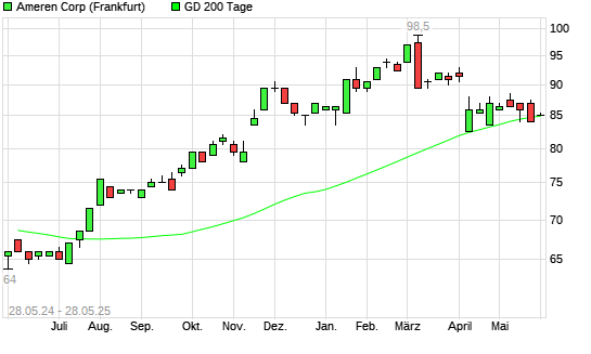 Mit dem Anstieg auf 85,50 EUR hat die Ameren-Aktie am 27.05.2025 die 200-Tage-Linie nach oben gekreuzt.