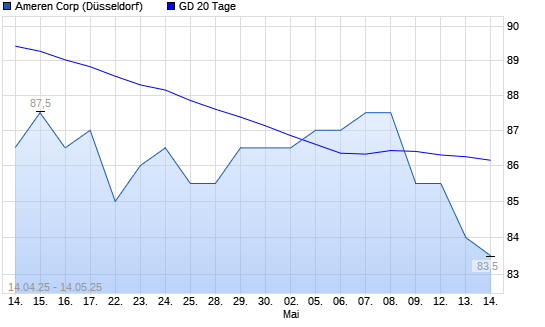Mit dem Rücksetzer auf 85,00 EUR hat die Ameren-Aktie am 13.05.2025 die 20-Tage-Linie nach unten gekreuzt.