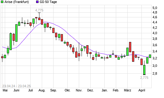 Mit dem Anstieg auf 3,25 EUR hat die Arise-Aktie am 22.04.2025 die 50-Tage-Linie nach oben gekreuzt.