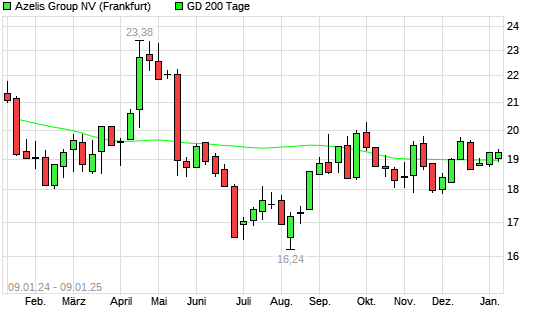 Mit dem Anstieg auf 19,06 EUR hat die Azelis Group N.V-Aktie am 08.01.2025 die 200-Tage-Linie nach oben gekreuzt.Die Azelis Group N.V-Aktie befand sich seit dem 07.01.2025 im langfristigen Abwärtstrend ...weiterlesen