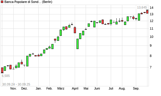 Mit dem Anstieg auf 13,49 EUR hat die BCA Pop di Sondrio-Aktie (ISIN IT0000784196) am 29.09.2025 ein neues All-Time-High erreicht und damit den Kurs vom 15.09.2025 eingestellt.Die BCA Pop di ...weiterlesen