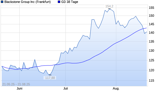 Mit dem Rücksetzer auf 139,50 EUR hat die Blackstone-Aktie am 20.08.2025 die 38-Tage-Linie nach unten gekreuzt.