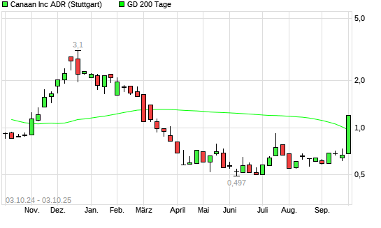Mit dem Anstieg auf 1,12 EUR hat die Canaan-Aktie am 02.10.2025 die 200-Tage-Linie nach oben gekreuzt.