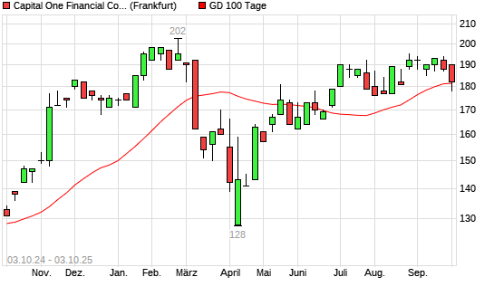 Mit dem Anstieg auf 182,00 EUR hat die Capital One Financial-Aktie am 02.10.2025 die 100-Tage-Linie nach oben gekreuzt.