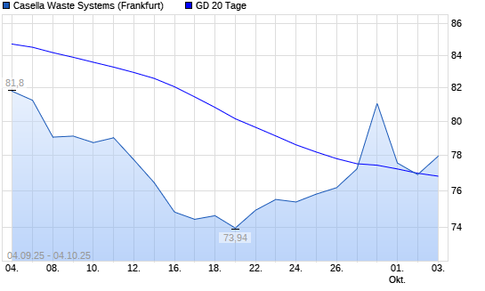 Mit dem Anstieg auf 77,96 EUR hat die Casella Waste Systems-Aktie am 03.10.2025 die 20-Tage-Linie nach oben gekreuzt.
