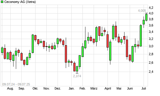 Mit dem Anstieg auf 3,80 EUR hat die Ceconomy St-Aktie (ISIN DE0007257503) am 08.07.2025 ein neues 3-Jahres-Hoch erreicht und damit den Kurs vom 03.07.2025 eingestellt.