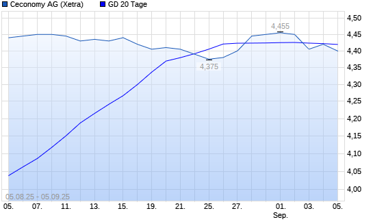 Mit dem Rücksetzer auf 4,39 EUR hat die Ceconomy St-Aktie am 04.09.2025 die 20-Tage-Linie nach unten gekreuzt.