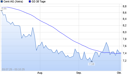 Mit dem Rücksetzer auf 7,26 EUR hat die Cenit-Aktie am 02.10.2025 die 38-Tage-Linie nach unten gekreuzt.