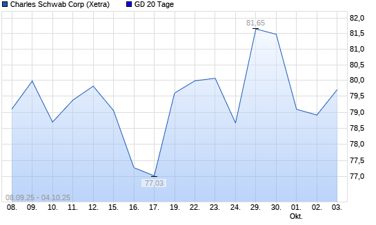 Mit dem Anstieg auf 79,21 EUR hat die Charles Schwab-Aktie am 03.10.2025 die 20-Tage-Linie nach oben gekreuzt.