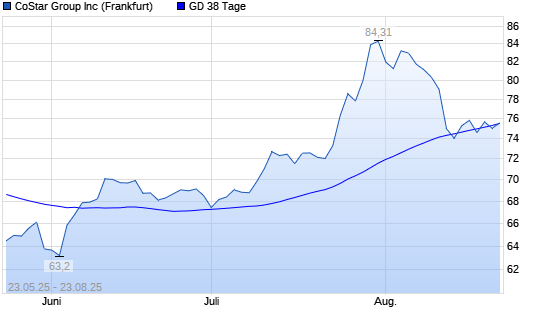 Mit dem Anstieg auf 75,53 EUR hat die CoStar-Aktie am 22.08.2025 die 38-Tage-Linie nach oben gekreuzt.
