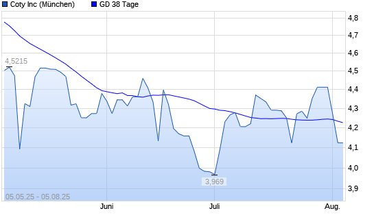 Mit dem Rücksetzer auf 4,08 EUR hat die Coty-Aktie am 04.08.2025 die 38-Tage-Linie nach unten gekreuzt.