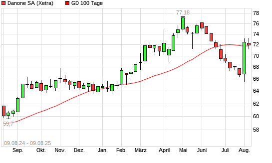 Mit dem Anstieg auf 71,96 EUR hat die Danone-Aktie am 08.08.2025 die 100-Tage-Linie nach oben gekreuzt.