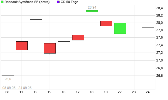 Mit dem Anstieg auf 28,12 EUR hat die Dassault Systèmes-Aktie am 23.09.2025 die 50-Tage-Linie nach oben gekreuzt.