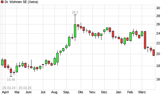 Mit dem Rücksetzer auf 20,25 EUR hat die Deutsche Wohnen-Aktie (ISIN DE000A0HN5C6) am 24.03.2025 ein neues 6-Monats-Tief erreicht und damit den Kurs vom 20.03.2025 eingestellt.