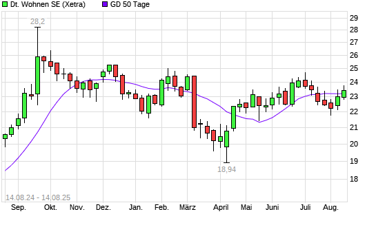 Mit dem Rücksetzer auf 22,75 EUR hat die Deutsche Wohnen-Aktie am 13.08.2025 die 50-Tage-Linie nach unten gekreuzt.