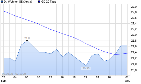 Mit dem Anstieg auf 21,45 EUR hat die Deutsche Wohnen-Aktie am 01.10.2025 die 20-Tage-Linie nach oben gekreuzt.Die Deutsche Wohnen-Aktie befindet sich seit dem 29.08.2025 im langfristigen Abwärtstrend ...weiterlesen
