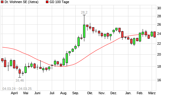 Mit dem Rücksetzer auf 23,50 EUR hat die Deutsche Wohnen-Aktie am 03.03.2025 die 100-Tage-Linie nach unten gekreuzt.Die Deutsche Wohnen-Aktie befindet sich seit dem 09.08.2024 im langfristigen ...weiterlesen