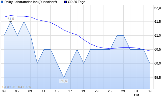 Mit dem Anstieg auf 61,50 EUR hat die Dolby-Aktie am 02.10.2025 die 20-Tage-Linie nach oben gekreuzt.