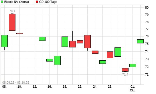 Mit dem Anstieg auf 75,26 EUR hat die Elastic-Aktie am 02.10.2025 die 100-Tage-Linie nach oben gekreuzt.