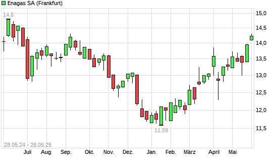 Mit dem Anstieg auf 14,30 EUR hat die Enagas-Aktie (ISIN ES0130960018) am 27.05.2025 ein neues 6-Monats-Hoch erreicht und damit den Kurs vom 26.05.2025 eingestellt.Die Enagas-Aktie befindet ...weiterlesen