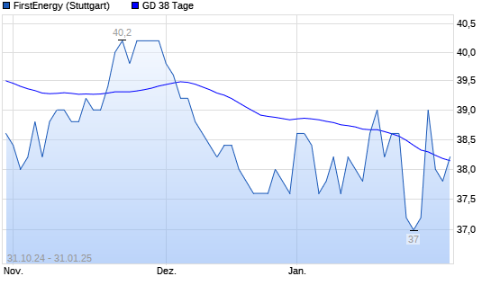 Mit dem Rücksetzer auf 37,80 EUR hat die FirstEnergy-Aktie am 30.01.2025 die 38-Tage-Linie nach unten gekreuzt.