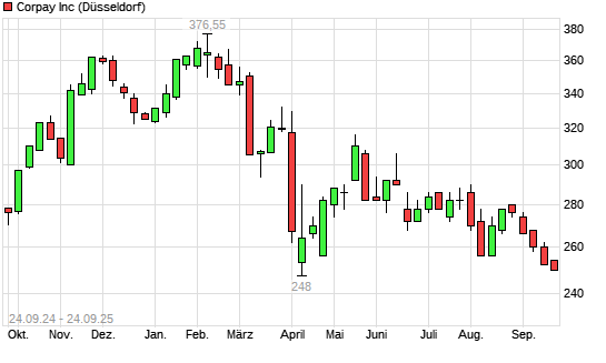 Mit dem Rücksetzer auf 252,00 EUR hat die Fleetcor Technologies-Aktie (ISIN US2199481068) am 23.09.2025 ein neues 12-Monats-Tief erreicht und damit den Kurs vom 09.04.2025 eingestellt.
