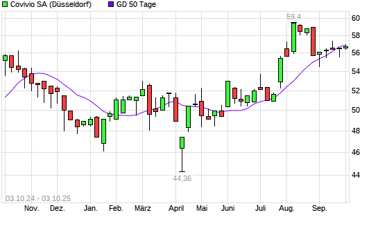Mit dem Rücksetzer auf 56,90 EUR hat die Foncière des Régions-Aktie am 02.10.2025 die 50-Tage-Linie nach unten gekreuzt.