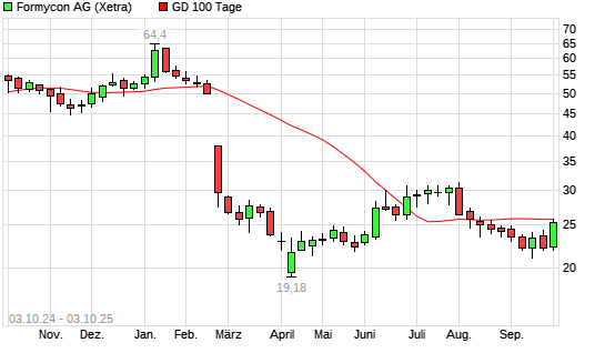 Mit dem Anstieg auf 26,15 EUR hat die Formycon-Aktie am 02.10.2025 die 100-Tage-Linie nach oben gekreuzt.