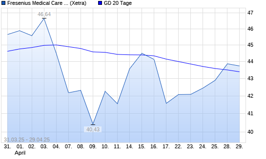 Mit dem Anstieg auf 43,85 EUR hat die Fresenius Medical Care-Aktie am 28.04.2025 die 20-Tage-Linie nach oben gekreuzt.