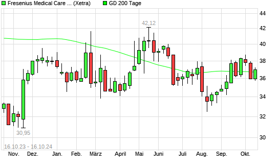 Mit dem Anstieg auf 36,73 EUR hat die Fresenius Medical Care-Aktie am 15.10.2024 die 200-Tage-Linie nach oben gekreuzt.