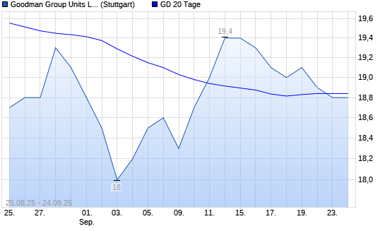 Mit dem Rücksetzer auf 18,78 EUR hat die Goodman Group Units-Aktie am 23.09.2025 die 20-Tage-Linie nach unten gekreuzt.