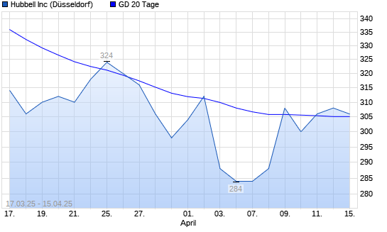 Mit dem Anstieg auf 310,00 EUR hat die HUBBELL-Aktie am 14.04.2025 die 20-Tage-Linie nach oben gekreuzt.