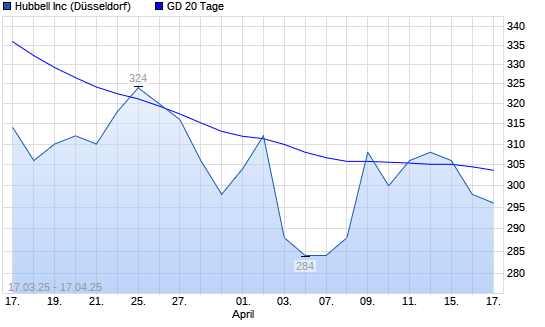 Mit dem Rücksetzer auf 300,00 EUR hat die HUBBELL-Aktie am 16.04.2025 die 20-Tage-Linie nach unten gekreuzt.Die HUBBELL-Aktie befindet sich seit dem 12.02.2025 im langfristigen Abwärtstrend ...weiterlesen