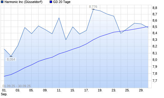 Mit dem Anstieg auf 8,45 EUR hat die Harmonic-Aktie am 29.09.2025 die 20-Tage-Linie nach oben gekreuzt.