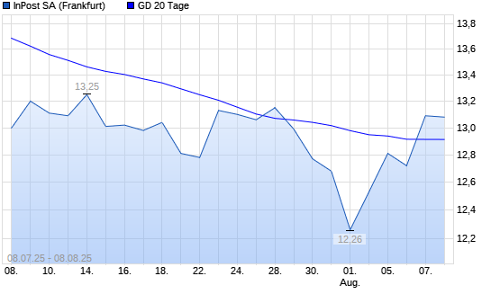 Mit dem Anstieg auf 13,09 EUR hat die InPost-Aktie am 07.08.2025 die 20-Tage-Linie nach oben gekreuzt.