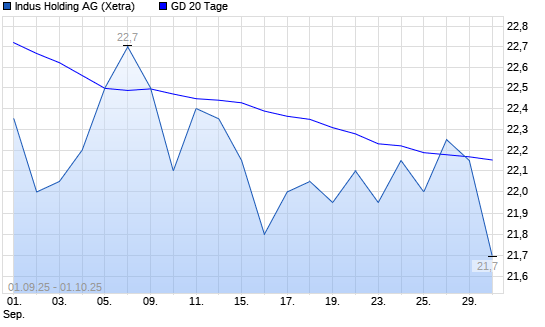 Mit dem Rücksetzer auf 22,00 EUR hat die Indus Holding-Aktie am 30.09.2025 die 20-Tage-Linie nach unten gekreuzt.