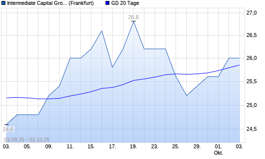 Mit dem Anstieg auf 26,00 EUR hat die Intermediate Capital Group-Aktie am 02.10.2025 die 20-Tage-Linie nach oben gekreuzt.
