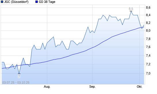 Mit dem Rücksetzer auf 8,10 EUR hat die JGC-Aktie am 02.10.2025 die 38-Tage-Linie nach unten gekreuzt.