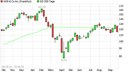 Mit dem Rücksetzer auf 117,14 EUR hat die KKR & Co.-Aktie am 25.09.2025 die 200-Tage-Linie nach unten gekreuzt.